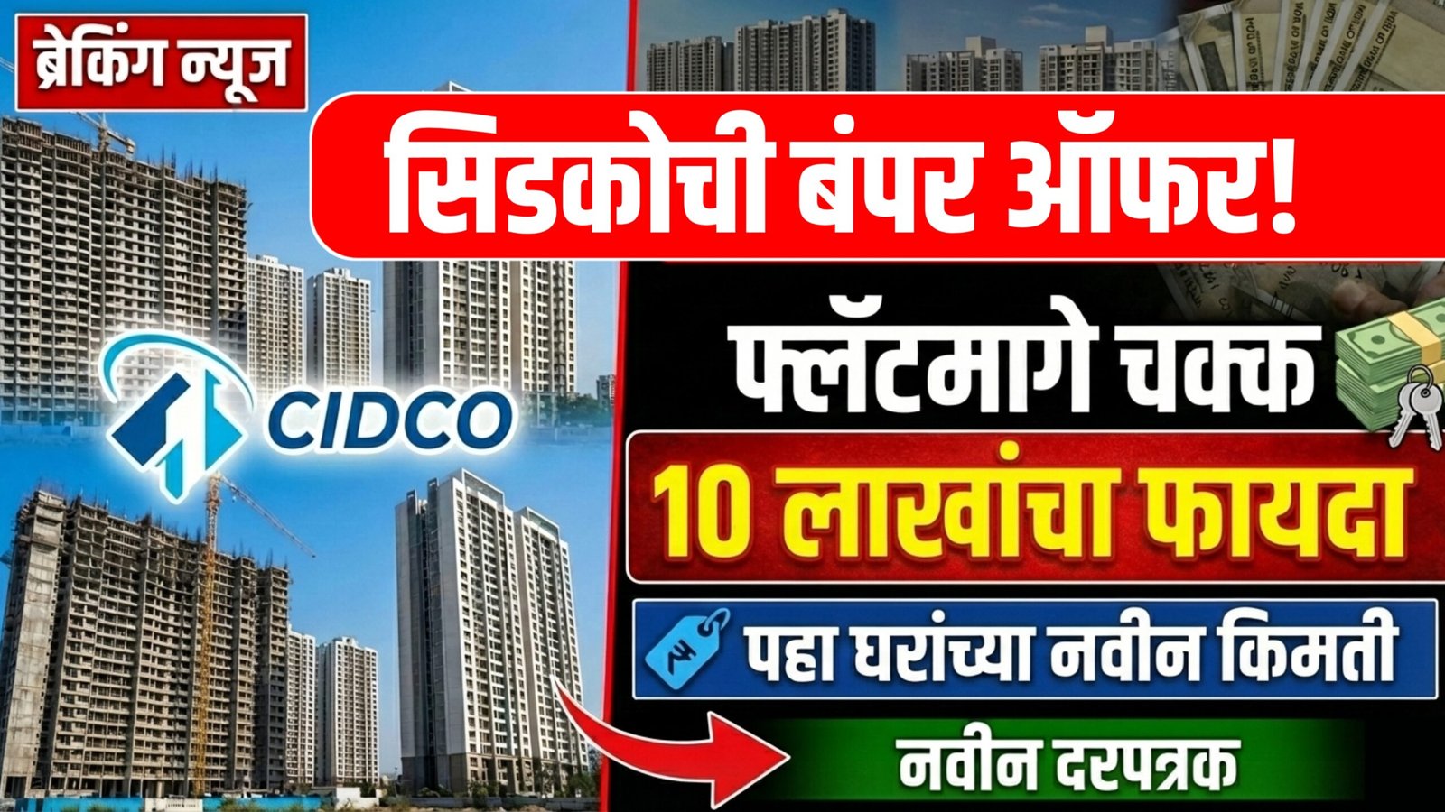 सिडकोची बंपर ऑफर! फ्लॅटमागे चक्क 10 लाखांचा फायदा.. पहा घरांच्या नवीन किमती..