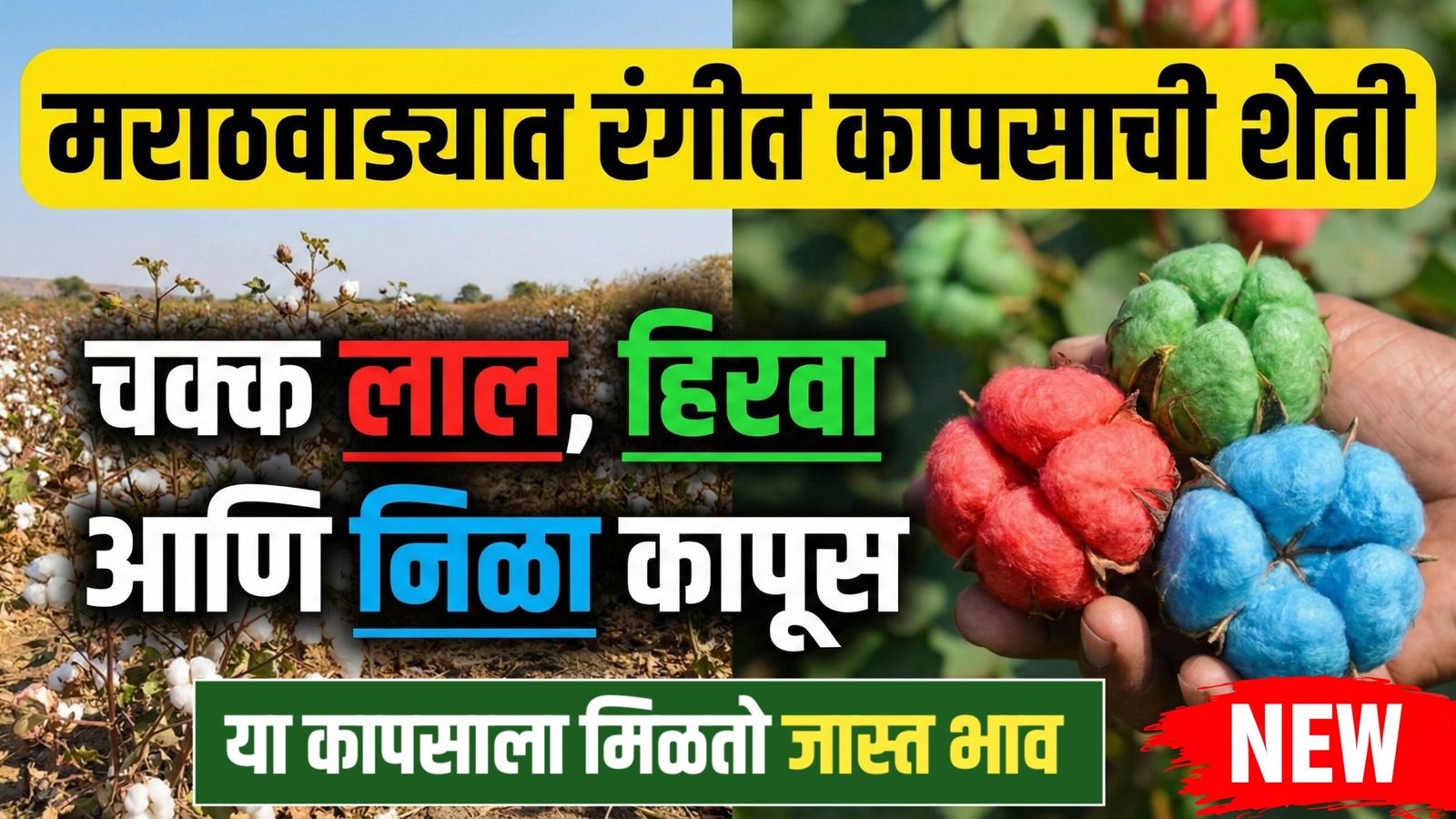 Colored Cotton Farming : शेतकरी मित्रांनो, सध्या कापसाला मिळणारा भाव आणि होणारा खर्च यांचा मेळ बसवणे दिवसेंदिवस कठीण होत चालले आहे. पण जर मी तुम्हाला सांगितले की, आता कापूस फक्त पांढराच नाही तर सोनेरी, निळा आणि चक्क हिरव्या रंगाचाही उगवणार आहे तर? होय, हे खरं आहे! आपल्या मराठवाड्यात एका नवीन क्रांतीची सुरुवात झाली आहे. नैसर्गिक रंगीत कापसाची (Natural Colored Cotton) लागवड आणि त्यामागचे अर्थकारण समजून घेण्यासाठी ही पोस्ट नक्की वाचा.