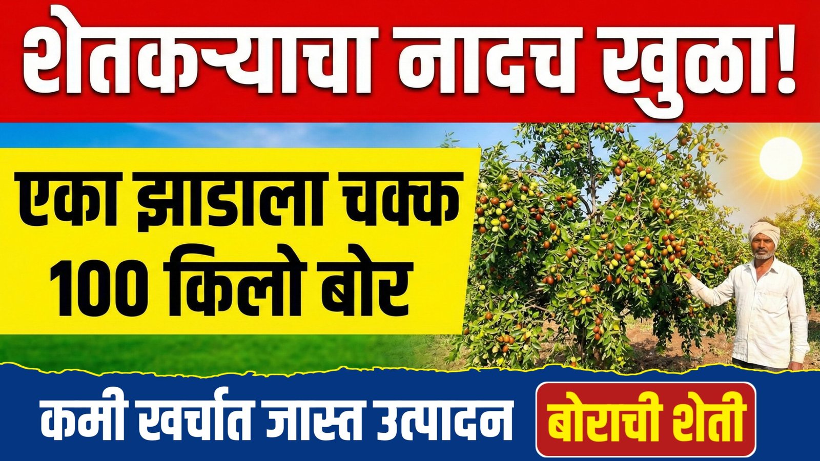 बोर शेती : शेतकरी मित्रांनो, पारंपरिक पिकांना फाटा देत आता नवनवीन प्रयोगातून आपले शेतकरी सोन्यासारखं पीक घेत आहेत. बोराची शेती म्हटलं की आपल्याला जुनी काटेरी झुडपं आठवतात, पण सांगोल्यातील एका शेतकऱ्याने ‘बॉल सुंदरी’ या नवीन जातीच्या बोराची लागवड करून कमाल केली आहे. ॲपल बोरापेक्षाही गोड आणि मार्केटमध्ये जबरदस्त मागणी असलेल्या या वानाची यशोगाथा तुम्हाला नक्कीच प्रेरणा देईल. चला तर मग जाणून घेऊया, कसं मिळतंय एका झाडापासून १०० किलो उत्पादन आणि ५५ रुपये किलोचा भाव!