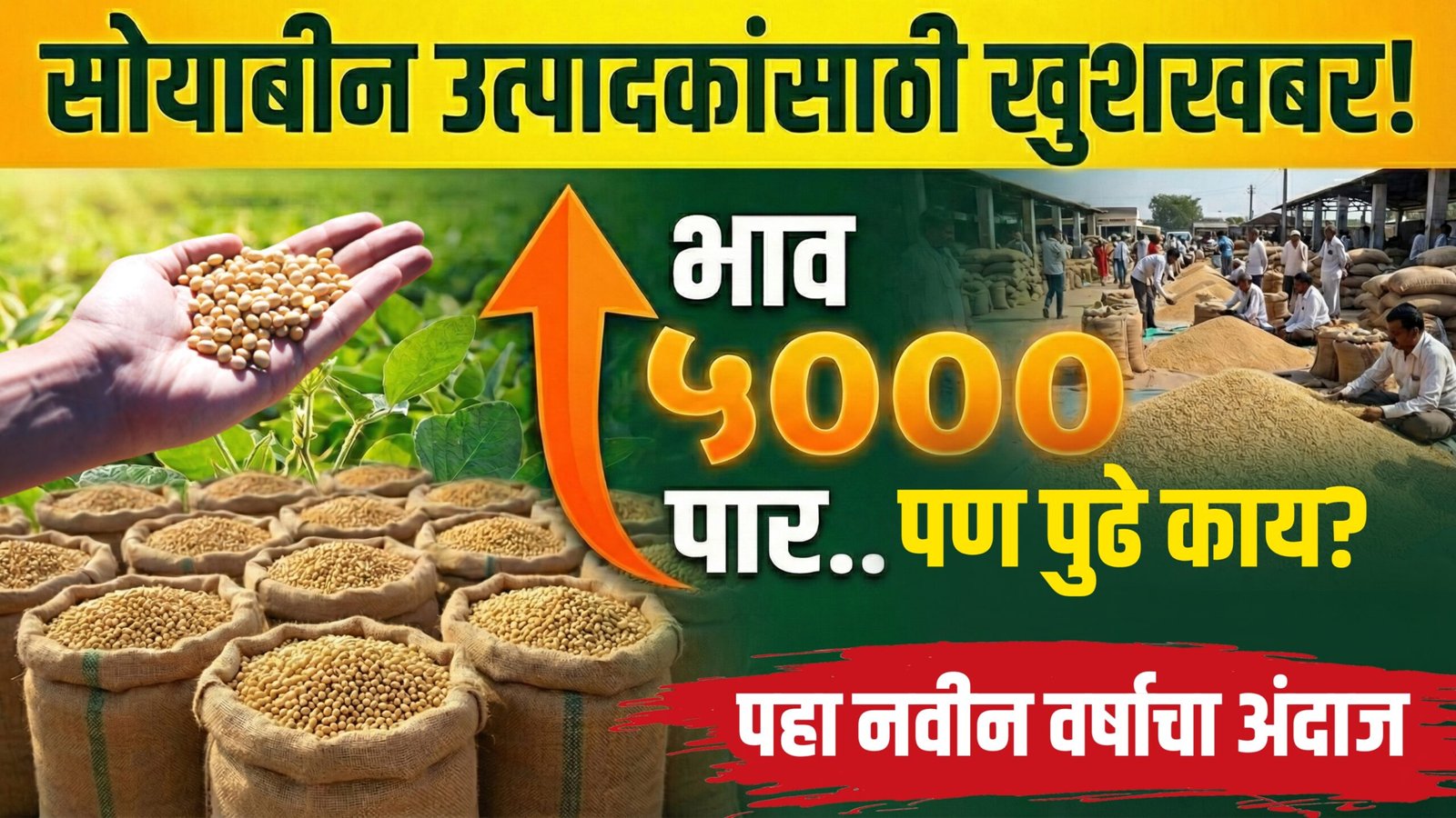 सोयाबीन उत्पादकांसाठी खुशखबर! भाव 5000 पार.. पण पुढे काय? पहा नवीन वर्षाचा अंदाज